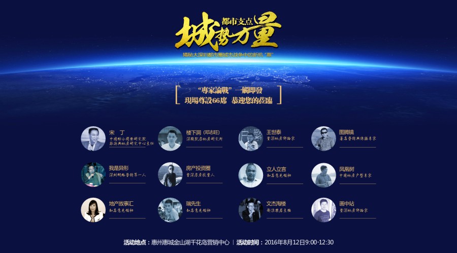 8月12日泰豐千花島將邀請任職于中國綜合開(kāi)發(fā)研究院旅游與地產(chǎn)研究中心主任的宋丁博士,深職院房地產(chǎn)研究所所長(cháng)、深圳經(jīng)濟學(xué)會(huì )副會(huì )長(cháng)鄧志旺(樓下洞),地產(chǎn)界知名意見(jiàn)領(lǐng)袖王世泰(老生阿泰)、劉曉云(地產(chǎn)故事匯)、陶文杰(文杰淘樓)、賀立立(立人立言)、華仲占(畫(huà)中站)、風(fēng)語(yǔ)(房產(chǎn)投資圈)、圖騰鏡、異形(我是異形)、鳳凰樹(shù)、瑞先生等資深地產(chǎn)評論家齊聚泰豐·千花島營(yíng)銷(xiāo)中心,共同就當下大家最關(guān)注的話(huà)題進(jìn)行解析互動(dòng)以及延生:
